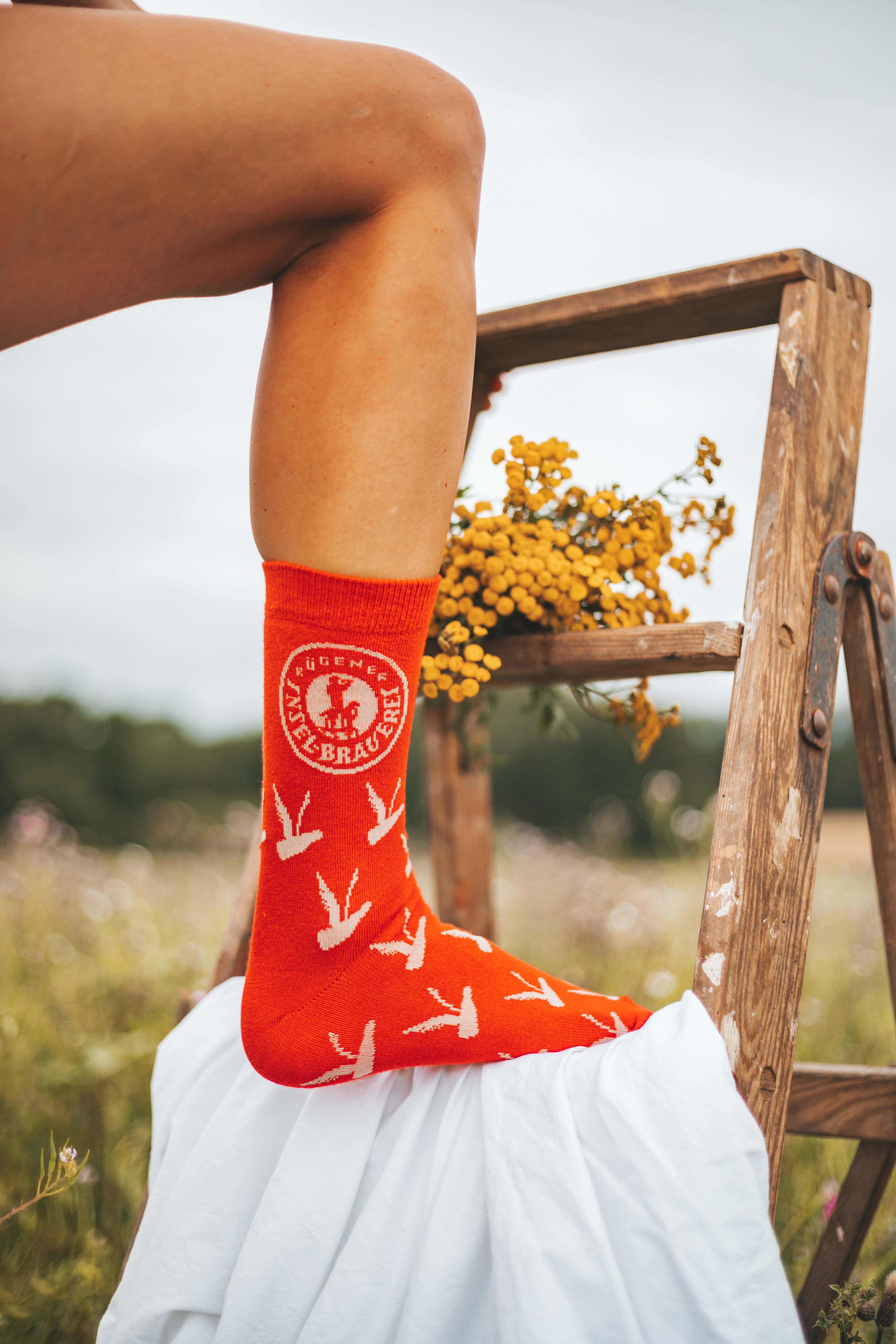 Die gestickten Socken für alle Bierfreund:innen in 4 verschiedenen Designs im Insel-Brauerei Look mit unserer fliegenden Flasche. Die Socken sind in 2 verschiedenen Größen erhältlich.