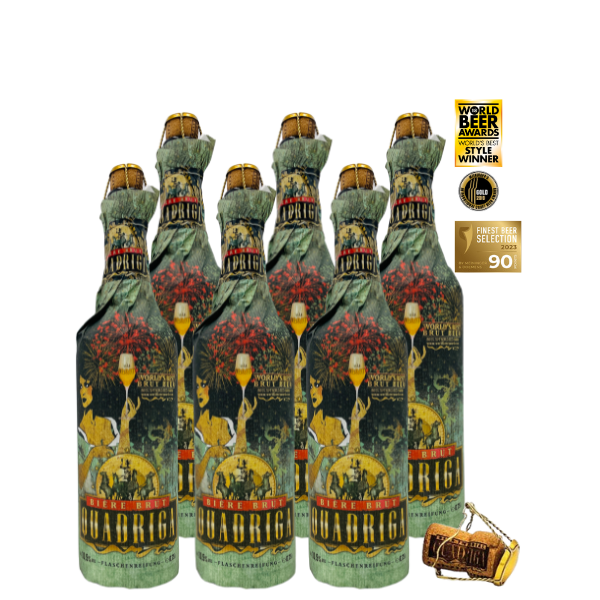 A magnificent head fills the festive glass. A rich gold lustre and a charming play of aromas delight the senses: a delicate fruity bouquet of Mirabelle bedded in an exquisite oaky note with a discrete hint of sourness. The select French Brut yeast adds freshness and a gentle effervescence, while the bottle conditioning lends the dry, elegant body its sophisticated polish.